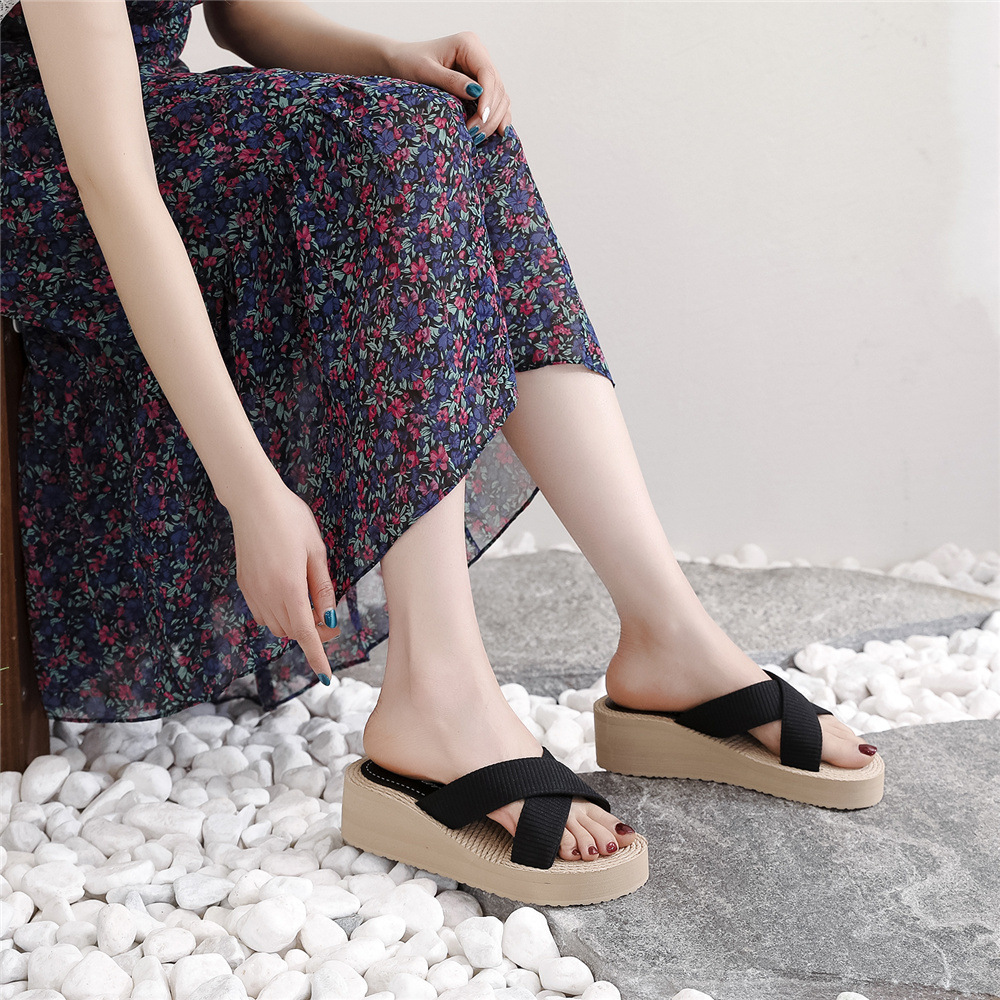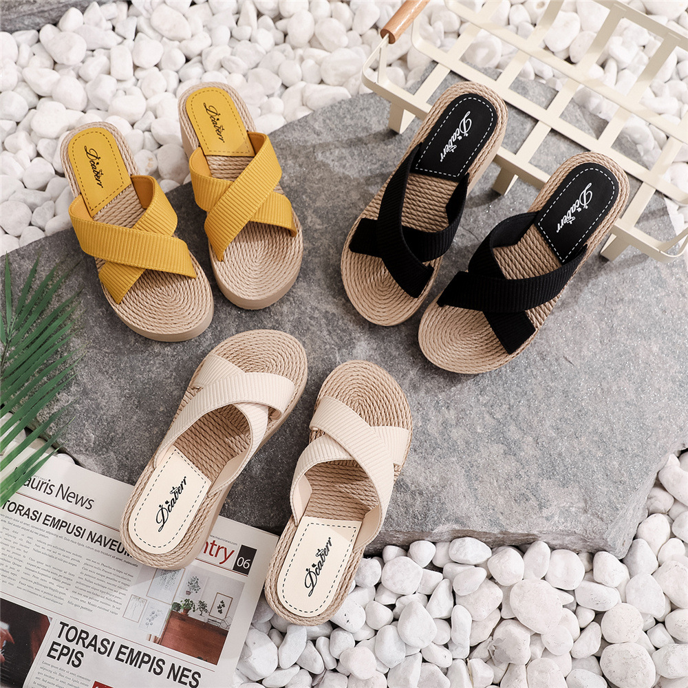 Sandal Wanita Import Wedges Rajut Anyam