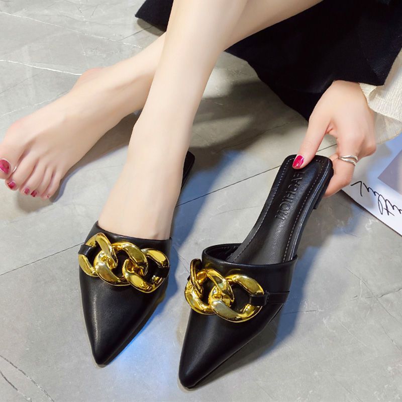 Flat Chain Leather Mule